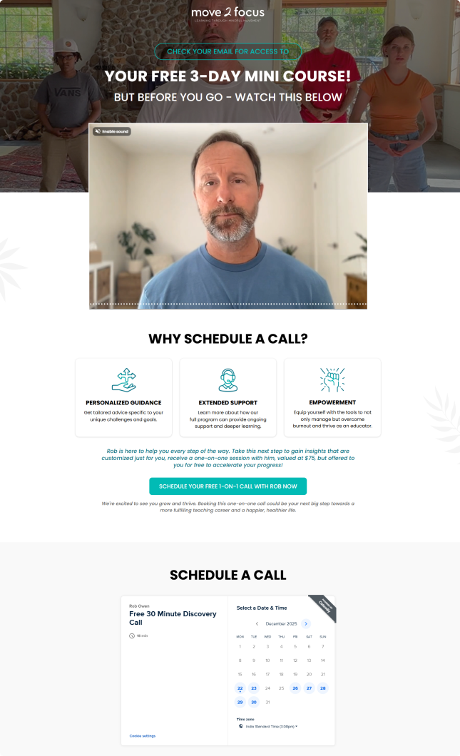We fully redesigned and rebuilt the website using GoHighLevel, creating a clean, structured platform designed specifically for stressed and overwhelmed educators.